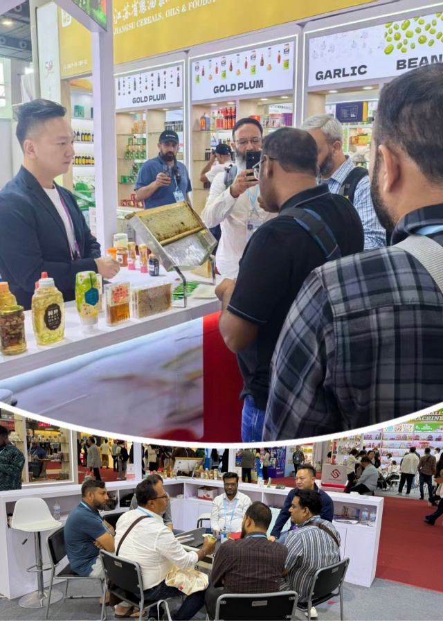 蜂蜜产品通过邀请采购商现场试吃巢蜜,直观传递产品“纯天然”核心特质,成功为展位聚集超高人气。来自中东、东南亚采购商围绕巢蜜的规格、品质与业务员展开多轮洽谈;其中,孟加拉国采购商已就液态蜂蜜产品明确采购意向,双方当前已进入实质性合作磋商阶段,有望快速转化为稳定订单。
